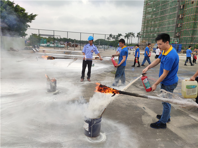 此次培訓(xùn)對象為2018年11月以后新入職的員工、公司消防隊(duì)員、重點(diǎn)消防部門玻璃鋼部分人員及油漆班員工,共76人。培訓(xùn)內(nèi)容分為消防理論知識講解、明火實(shí)操培訓(xùn)、模擬火災(zāi)現(xiàn)場消防演習(xí)、培訓(xùn)總結(jié)四個(gè)部分,全過程由人力資源中心保安隊(duì)隊(duì)長組織并指揮,安委會安全主任全程監(jiān)督協(xié)助。