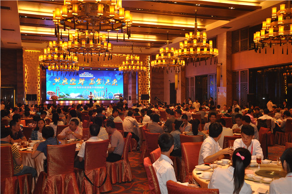 晚上市游協(xié)在金上濠舉行招待晚宴,延開百席,更邀請(qǐng)到IAAPA主席Mario先生參加。作為市游協(xié)會(huì)長(zhǎng),鄧志毅董事長(zhǎng)發(fā)表了熱情洋溢的致辭,歡迎世界各國、全國各地的客商到中山洽談、合作,同時(shí),他對(duì)中山游戲游藝產(chǎn)業(yè)充滿信心,表示本屆游博會(huì)較往屆帶來更多驚喜。隨后宴會(huì)開始,游樂業(yè)界共聚一堂,為本次游樂的盛宴舉杯共賀。
