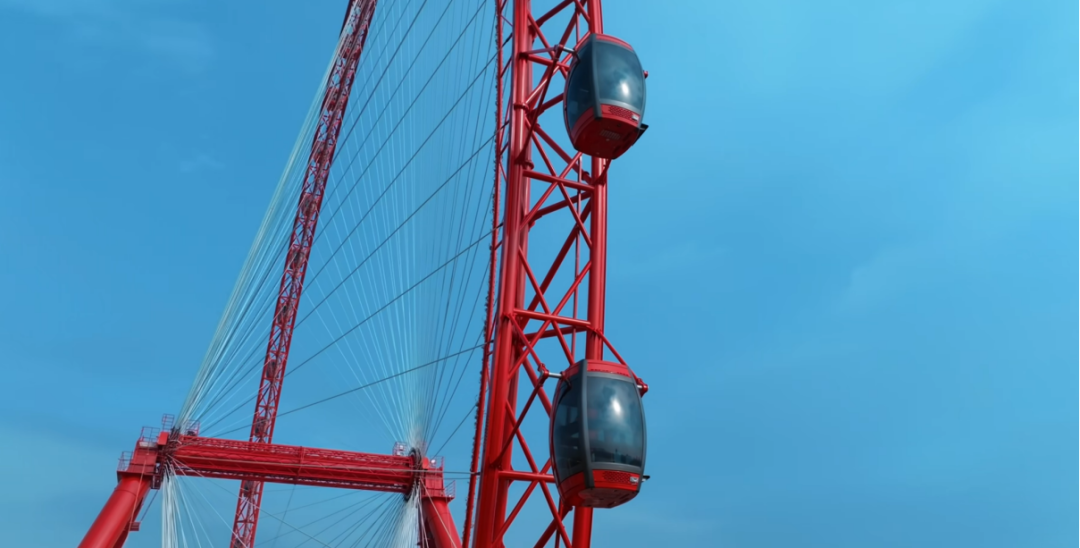 值得關(guān)注的是,金馬游樂在該項(xiàng)目上應(yīng)用了兩項(xiàng)創(chuàng)新技術(shù)方案,確保摩天輪的舒適及安全。吊廂伺服調(diào)平技術(shù),令每個(gè)吊廂在運(yùn)行中始終處于水平狀態(tài),大幅提升吊掛式轎廂受到風(fēng)載荷時(shí)的平穩(wěn)性;雙驅(qū)動(dòng)系統(tǒng)獨(dú)立運(yùn)作方案,增強(qiáng)安全冗余,緊急狀況下無高空救援風(fēng)險(xiǎn)。