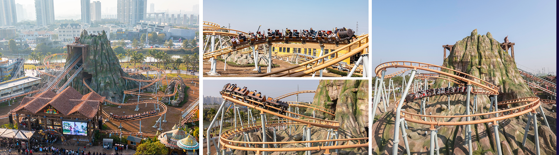 礦山車模仿古代礦山列車運行模式,采用仿古式的火車造型,游客仿佛置身于礦山現(xiàn)場。全程路軌設有兩個提升段,配合先進變軌技術(shù)、減震膠與柔和的永磁制動,為乘客乘坐帶來舒適靜謐的體驗。同時獨特的壓腹式壓杠結(jié)構(gòu),確保包括?度1.1m以上兒童可被有效束縛,增大游客受眾范圍。