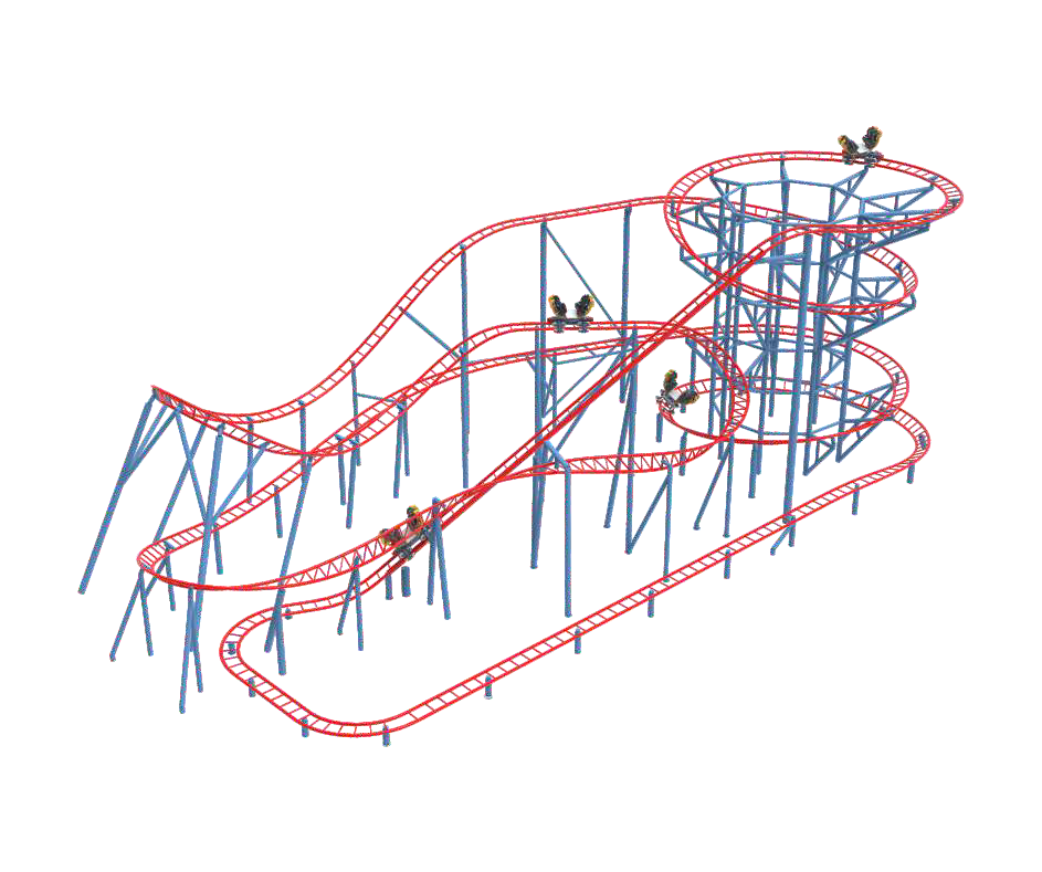 超炫過山車結(jié)合720°螺旋下降、水平螺旋環(huán)的運動方式,配合自轉(zhuǎn)回旋車體,同時創(chuàng)新地將過山車有傾?的路軌引到自旋滑車的軌道中,打造出兼具失重、超重和回旋的多重乘坐體驗。四人座車體中,游客兩兩對坐,互動交流有趣。該設備適合親?、情侶群體游客游玩。