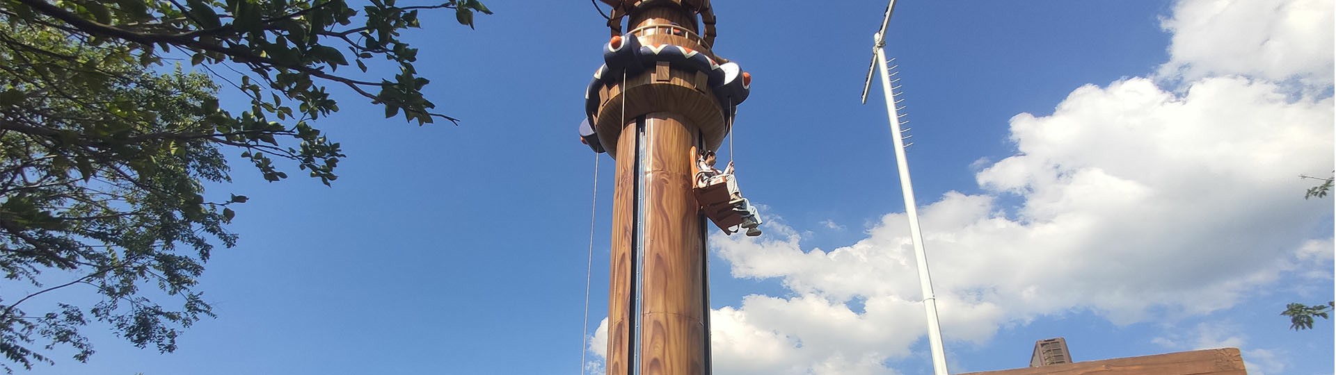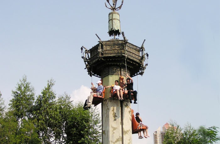 在乘客拉繩操作下快速升、降或停留在半空;快速上升時,因要雙手交替拉繩,使人產生一種攀爬向上的感覺;快速下降時又有高處下落的刺激;老、少咸宜。