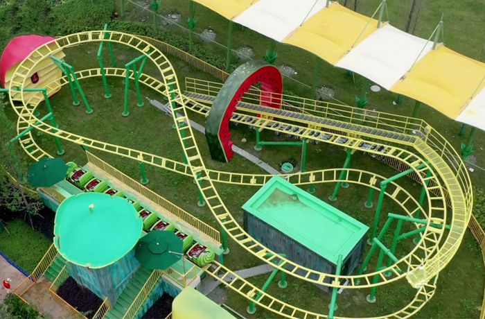 一種戶外休閑娛樂設備,列車由摩擦輪驅(qū)動提升到軌道最高端后,立即轉(zhuǎn)為沿軌道自由高速滑行,時而俯沖直下,時而電掣穿梭,呼嘯而行。游客舒適地穩(wěn)坐于座椅上,盡情地領略失重和離心的驚險刺激的感覺,是游客的摯愛項目。