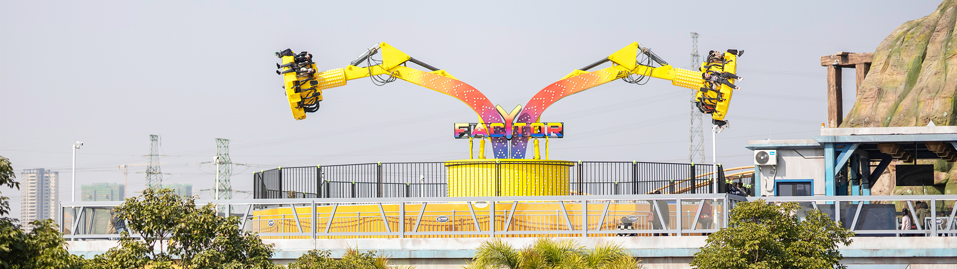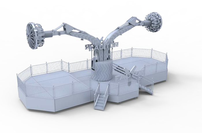 繞垂直軸旋轉(zhuǎn)、座艙繞支臂軸旋轉(zhuǎn)的陀螺類游樂設(shè)施;大臂向上拉升,到達(dá)上限位置后,座艙旋轉(zhuǎn);傾斜運行、俯瞰大地,體驗翻倍;