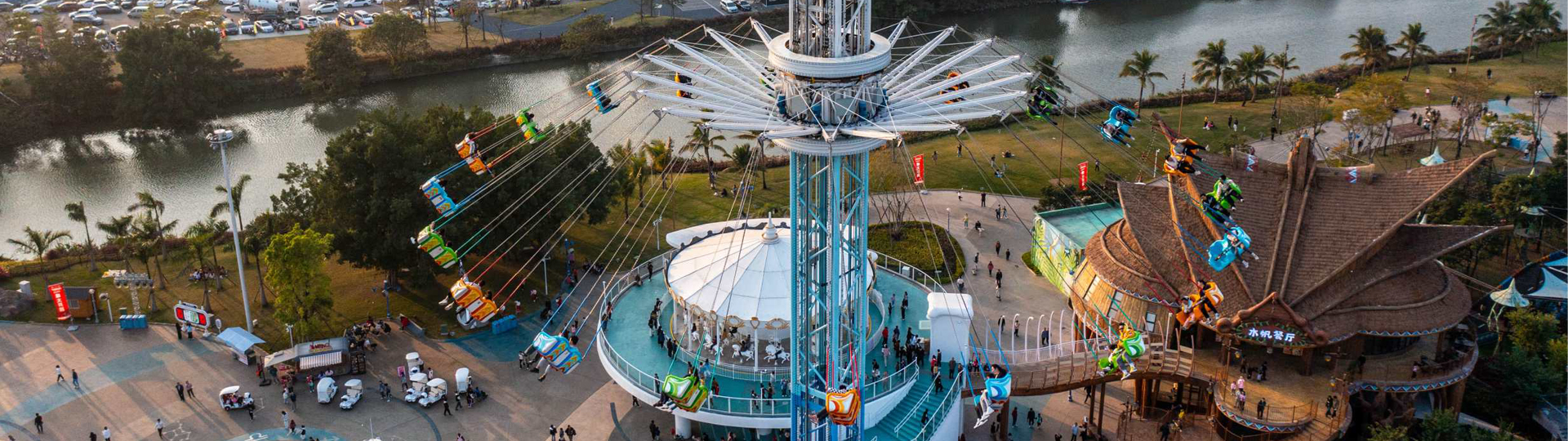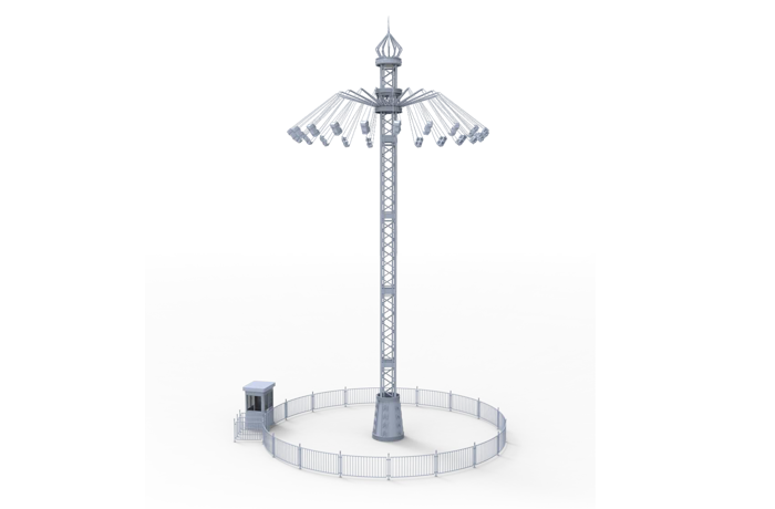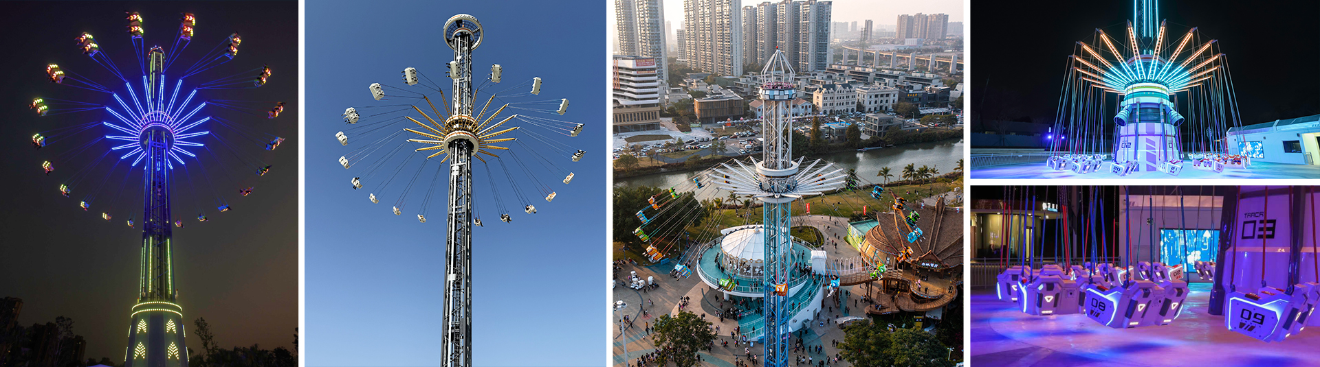 ??塔設(shè)備由塔體、滑?架、吊椅三部分組成。獨(dú)有雙?座椅設(shè)計(jì),隨著速率越來越快,座椅在半空中向外飄散,在整個(gè)游玩過程中乘客可充分享受?速??的暢快,刺激?浪漫。