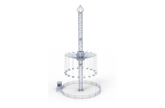 飛行塔設(shè)備由塔體、滑?架、吊椅三部分組成。獨(dú)有雙人座椅設(shè)計(jì),隨著速率越來越快,座椅在半空中向外飄散,在整個(gè)游玩過程中乘客可充分享受高速飛行的暢快,刺激又浪漫。