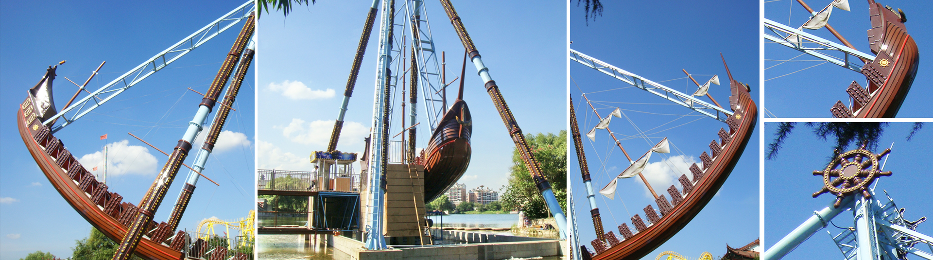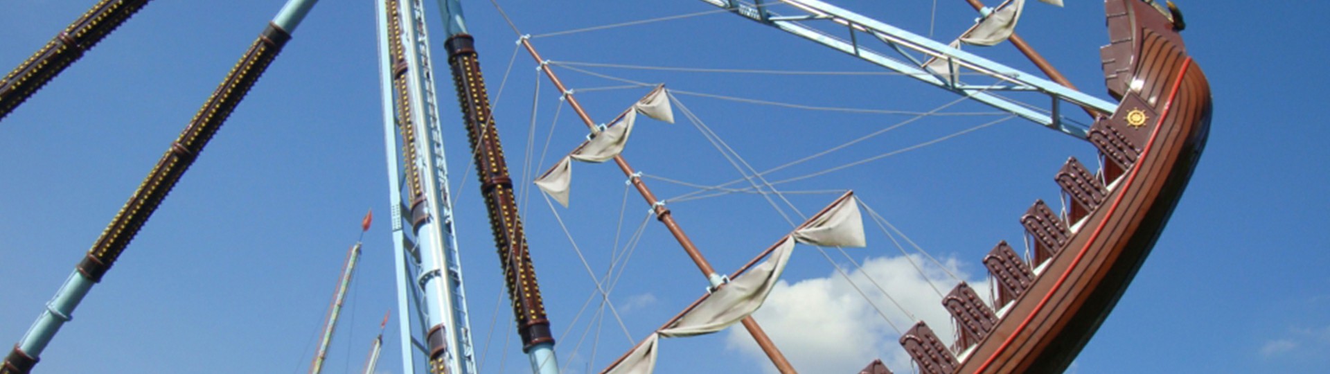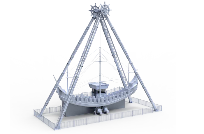 海盜船繞水平軸來回擺動,模擬海盜乘風(fēng)出海的場景,交替而至的失重 和超重感讓乘客盡情體驗搖擺的樂趣。14排座椅,承載56人。