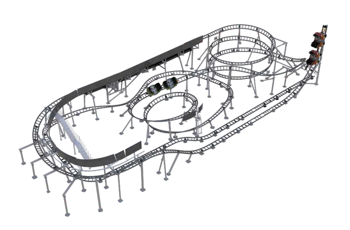 酷炫過(guò)山車(chē)是應(yīng)用LSM電磁彈射技術(shù)開(kāi)發(fā)的全新一代過(guò)山車(chē),具有瞬時(shí)推力大的特點(diǎn)。短行程的發(fā)射使列車(chē)3秒內(nèi)完成時(shí)速?gòu)?到43km/h的加速,強(qiáng)勁的推背感緊接U型回蕩、貼地?速轉(zhuǎn)彎、以及雙層螺旋回環(huán)一氣呵成,讓游玩體驗(yàn)豐富刺激。無(wú)動(dòng)力自旋式車(chē)體配合腿部壓桿,極大提升了乘客的自由感和舒適度。酷炫過(guò)山車(chē)尤其適合室內(nèi)樂(lè)園。