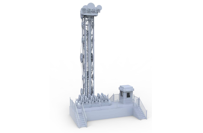 雙排青蛙跳以跳躍為主題,座艙在塔體上做上下移動,當(dāng)運(yùn)行到最高位置時座艙會向前傾轉(zhuǎn)約10°,令乘客體驗(yàn)到失重、超重以及在高空突然前傾的多重游玩感受。
