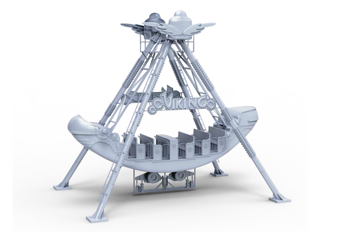 海盜船繞水平軸來回擺動,模擬海盜乘風(fēng)出海的場景,交替而至的失重和超重感讓乘客盡情體驗搖擺的樂趣。6排座椅,承載24人。