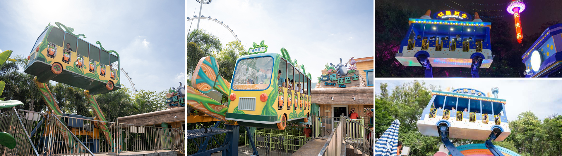 瘋狂巴士配備雙向可逆無級自動調(diào)速系統(tǒng),經(jīng)過減速、分速等一系列機(jī)構(gòu),實現(xiàn)一臺電機(jī)帶動兩個驅(qū)動臂的擺動,帶動巴士的平動,巴士在電氣系統(tǒng)的控制下可以實現(xiàn)正反兩種通過最高點(diǎn)的運(yùn)動,給乘客以歡樂搖擺的體驗。