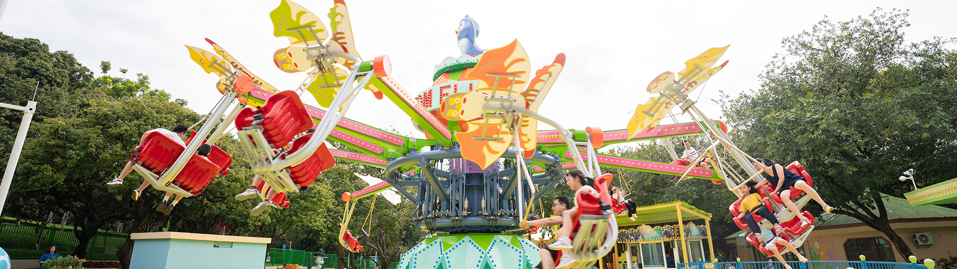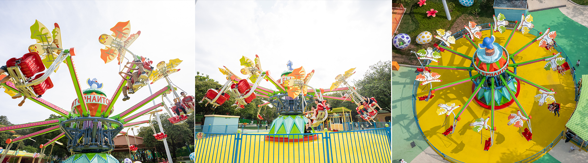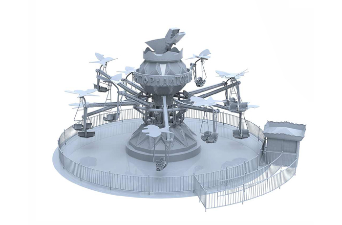 幻影飛行,以折紙風(fēng)車、千紙鶴和紙飛機(jī)系列為主題,讓人耳目一新的同時(shí)引起兒時(shí)回憶,引發(fā)共鳴。座艙能夠舒適的容納兒童和成人,擁有12個(gè)扶手,紙飛機(jī)底部擁有關(guān)于兒童主題涂鴉,乘客可以通過推拉他們面前的三?形控制桿控制紙飛機(jī),此外中央液壓系統(tǒng)擁有保持平衡的功能,無論乘客如何控制紙飛機(jī)的運(yùn)動(dòng),都能使其保持平衡飛行。