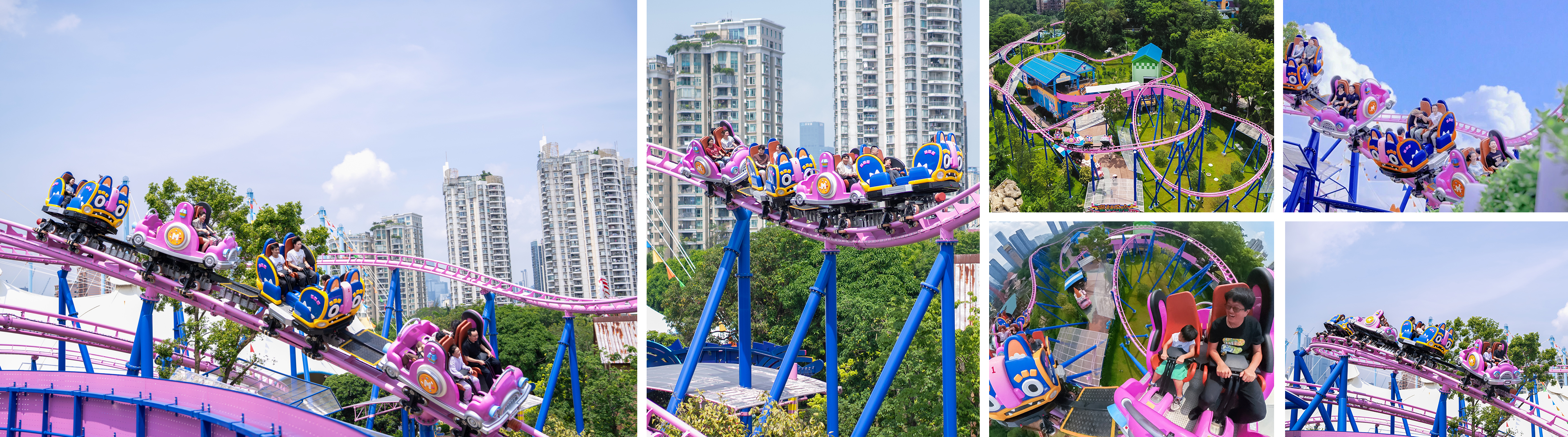 列式自旋滑車為家庭式自旋滑車,采用LCM電磁彈射驅動,雙彈射段結合自旋車體,暢享多重游玩體驗。列車瞬時彈射出發(fā),高速奔馳進入上升彎道沖上坡頂,緊接著通過S形轉彎到達半空進入第二段彈射。第二次彈射將乘客送到軌道制高點,再螺旋下降。過程中自旋車體自由旋轉,歡樂加倍。