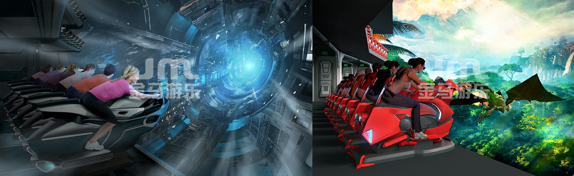 騎跨式飛行影院以騎跨方式代替?zhèn)鹘y(tǒng)座椅,屬國內(nèi)首創(chuàng),采用獨(dú)立多自由度座椅,使每一位乘客擁有著相同的感觀,結(jié)合提升體驗(yàn)效果;結(jié)合高清球幕電影以及震撼逼真的科技特效,為乘客打造一場身臨其境的沉浸式游樂體驗(yàn)。