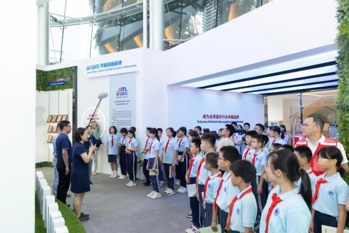 活動期間,中國特種設(shè)備檢測研究院游樂設(shè)施與客運索道專業(yè)人員、中山市游戲游藝行業(yè)協(xié)會秘書長雷嘉詠帶領(lǐng)中山市港口鎮(zhèn)中心小學(xué)學(xué)生到訪金馬游樂開展了實地參觀。