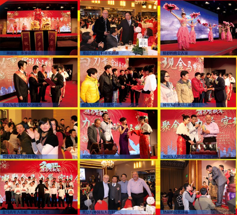 2月11日(農(nóng)歷年十二),金馬在東區(qū)海港城隆重舉行新春晚宴,本次晚宴以“凝聚金馬力量,實現(xiàn)金馬夢”為主題,金馬人歡聚一堂喜慶新春,大會還邀請了公司國內(nèi)外戰(zhàn)略合作伙伴及行業(yè)行家,晚宴筵開近百席,節(jié)目精彩紛呈,抽獎人人有份,送別了難忘的2013年,跨入充滿挑戰(zhàn)和機遇的2014年。